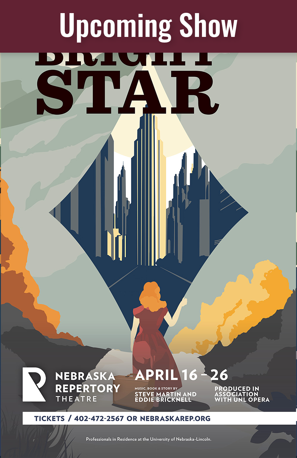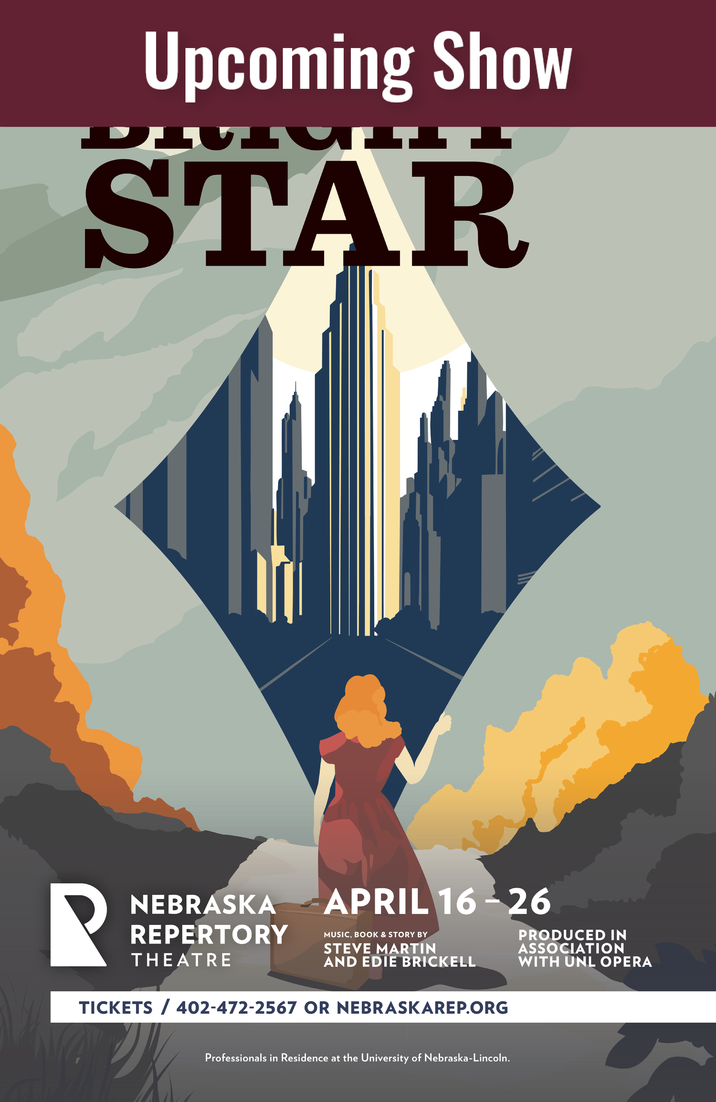 Bright Star, produced in association with UNL Opera - with music, book, and story by Steve Martin and Edie Brickell, is a bluegrass-infused musical that weaves together past and present as it follows a woman’s search for redemption and reunion in 1940s North Carolina.